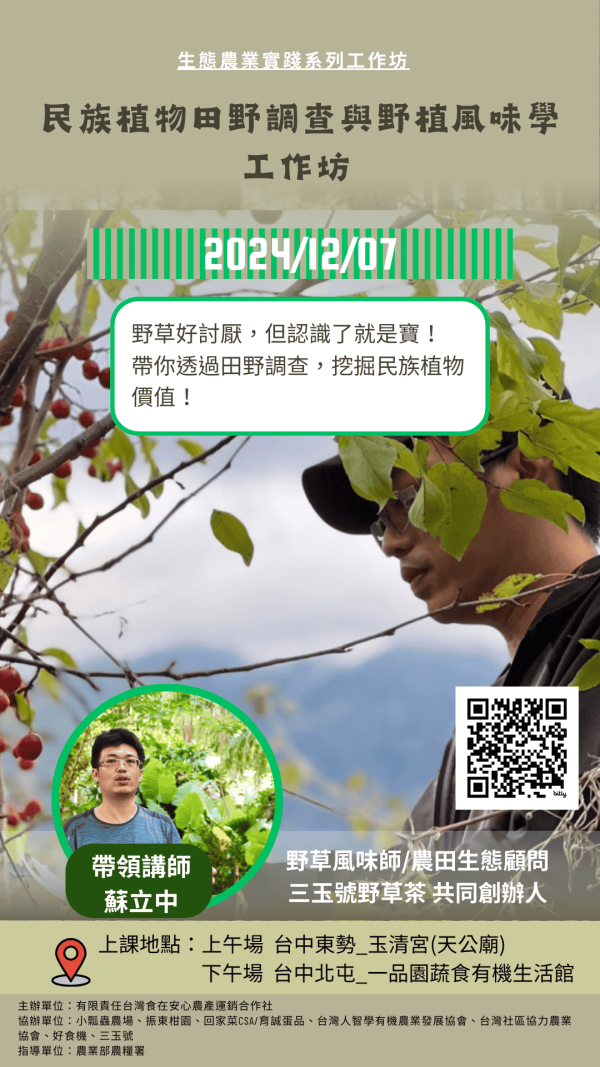 「民族植物與遊程設計」工作坊(食農教育體驗遊程設計)