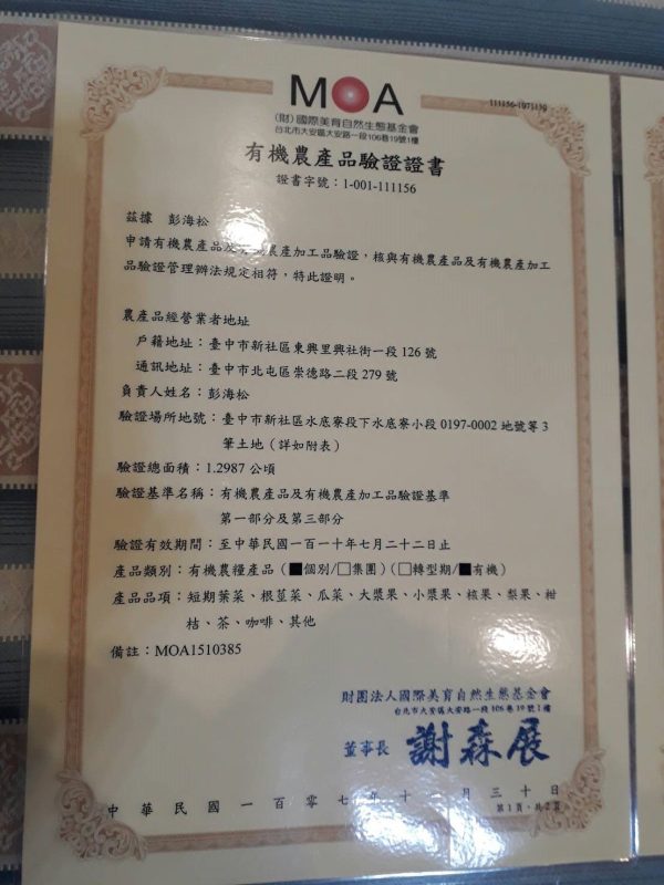 食安合作社的社員農友彭海松與夫人游念慈十多年來在台中市經營口碑卓著的一品園天然蔬食有機生活館(餐廳),同時,也自力照顧新社一品園有機農場,秉持著理念初衷,慢食養生:定時定量慢慢吃,蘊含著珍惜領受大地恩賜。健康蔬食 :以尊重生命的態度,享受大地滋長的食物。相當用心的經營有機農場與餐廳。
