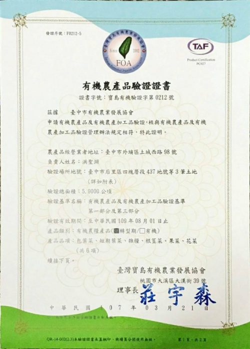 審核方式:有機驗證,逢甲大學合經系師生助產助銷,以及台灣食在安心農產運銷合作社採用參與式查證體系(PGS)審查。以2020/12/8,PGS審查直播錄影。