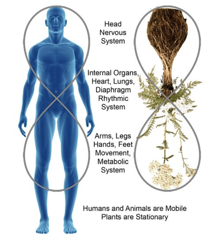 第二講從土壤開始,來談談植物與人體的對應關係,施泰納博士給了我們一個這兩方對照的面向,將農場視為一個獨立的個體來思考:健康的農場必須要能夠自給自足,農場盡可能不必向外界去購買材料回到農場,農場才可能是健康的。